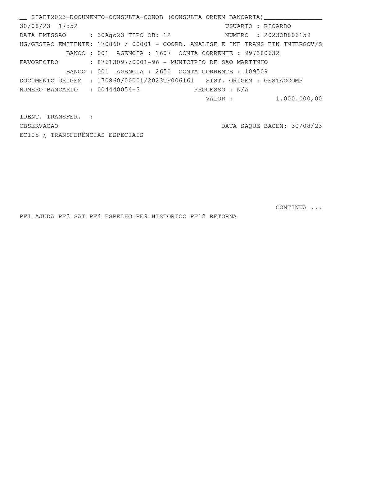 CONCRETIZADO O PAGAMENTO DE EMENDA PARLAMENTAR DE 1 MILHÃO DE REAIS PARA SÃO MARTINHO