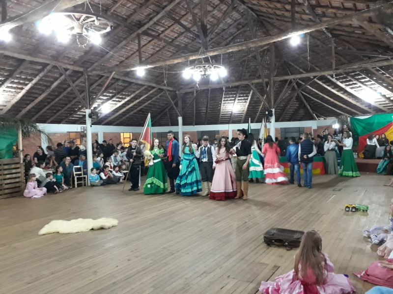 Inicialmente, o Departamento Artístico do CTG apresentou as danças de entrada e, na sequência, as danças tradicionais. O público presente se encantou com as coreografias e encenações.