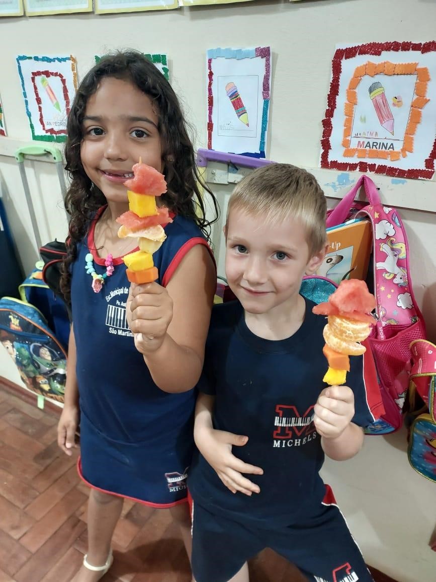 As ações de EAN foram realizadas com o objetivo de incentivar as crianças ao consumo da merenda escolar ofertada na escola, bem como orientar os alunos, professores e pais sobre a importância do consumo de alimentos “in natura” e minimamente processados, e também sobre os malefícios do consumo excessivo de alimentos ultra processados, tanto no ambiente escolar quanto no familiar.