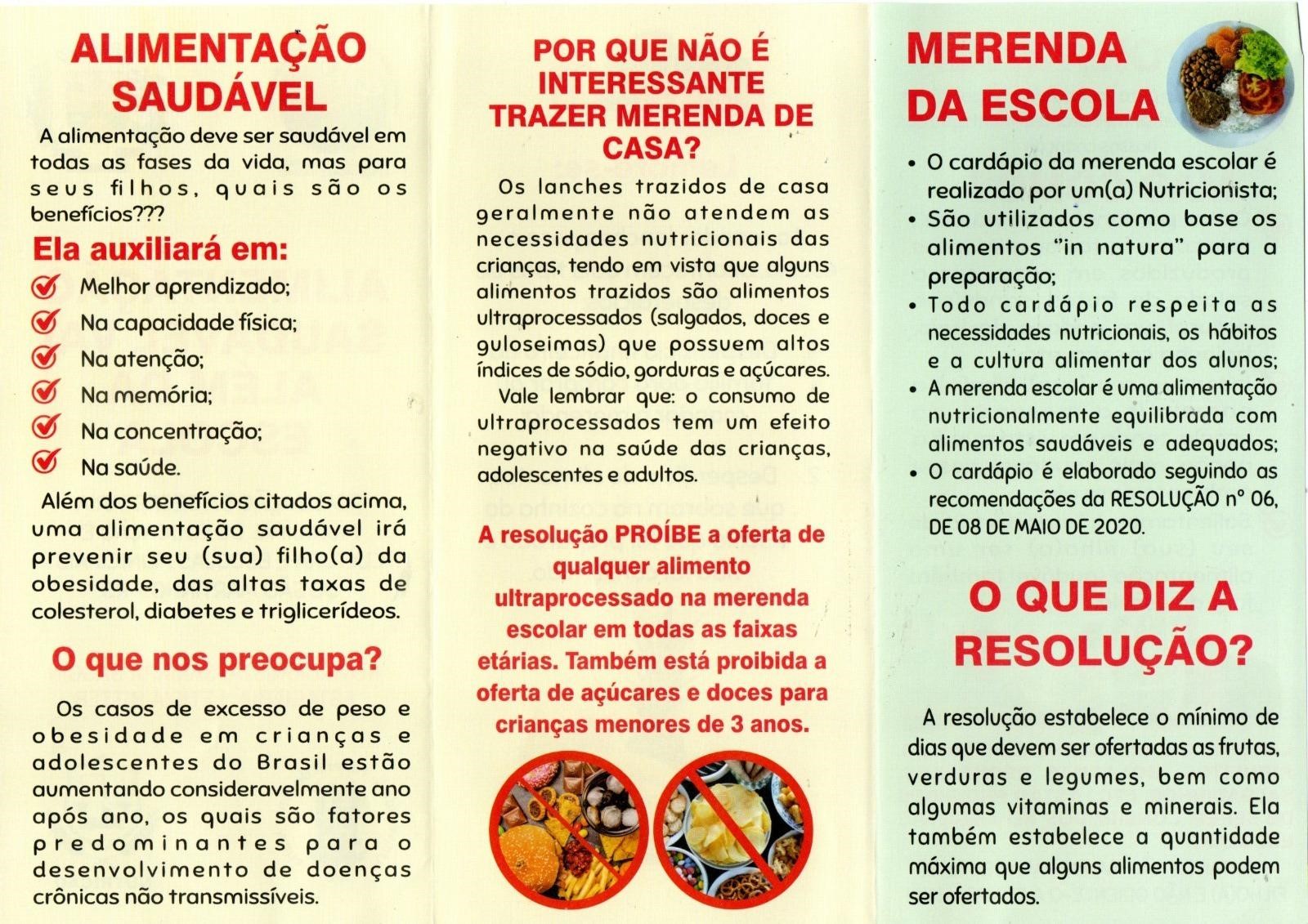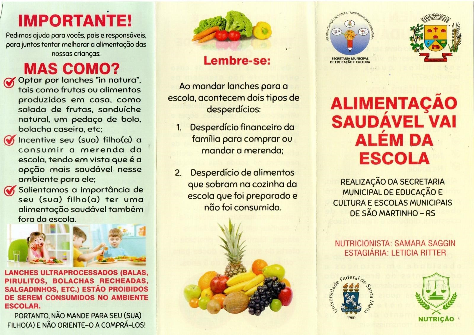 Para finalizar as atividades, a estagiária e a Nutricionista, elaboraram folders educativos para os pais dos alunos, com informações referentes à alimentação saudável e à merenda escolar.