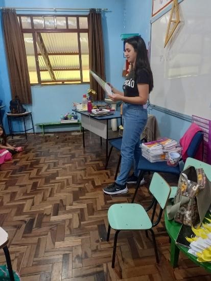 A estagiária Letícia Ritter, do curso de Nutrição, da Universidade Federal de Santa Maria, campus Palmeira das Missões, juntamente com a sua Supervisora, Nutricionista da Secretaria Municipal de Educação e Cultura do município de São Martinho, Samara Saggin, realizaram ações de Educação Alimentar e Nutricional (EAN) com os alunos e pais da Escola Municipal de Ensino Fundamental Padre Antonio Michels, de São Martinho – RS.