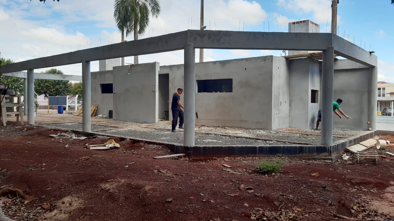 Já se encontram em fase avançada as obras do novo quiosque da Praça Municipal Valentin Klein. Nessa fase da obra, estão sendo concluídos os banheiros,